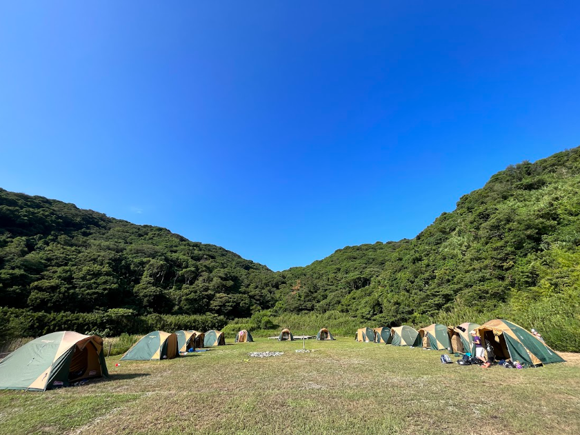 地ノ島では、広大で豊かな自然の中でキャンプができます!ビーチエリアや原っぱエリアからお好きなエリアを選んでいただけます。キャンプ道具のレンタルも可能!憧れの無人島キャンプを地ノ島でデビューしませんか。